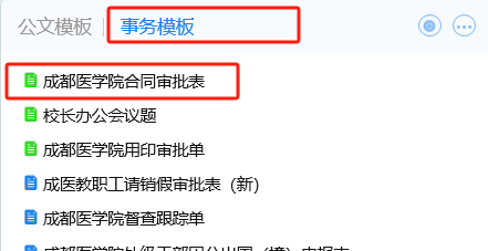 一、OA系统进入“事务模板”,选择“合同审批表”。